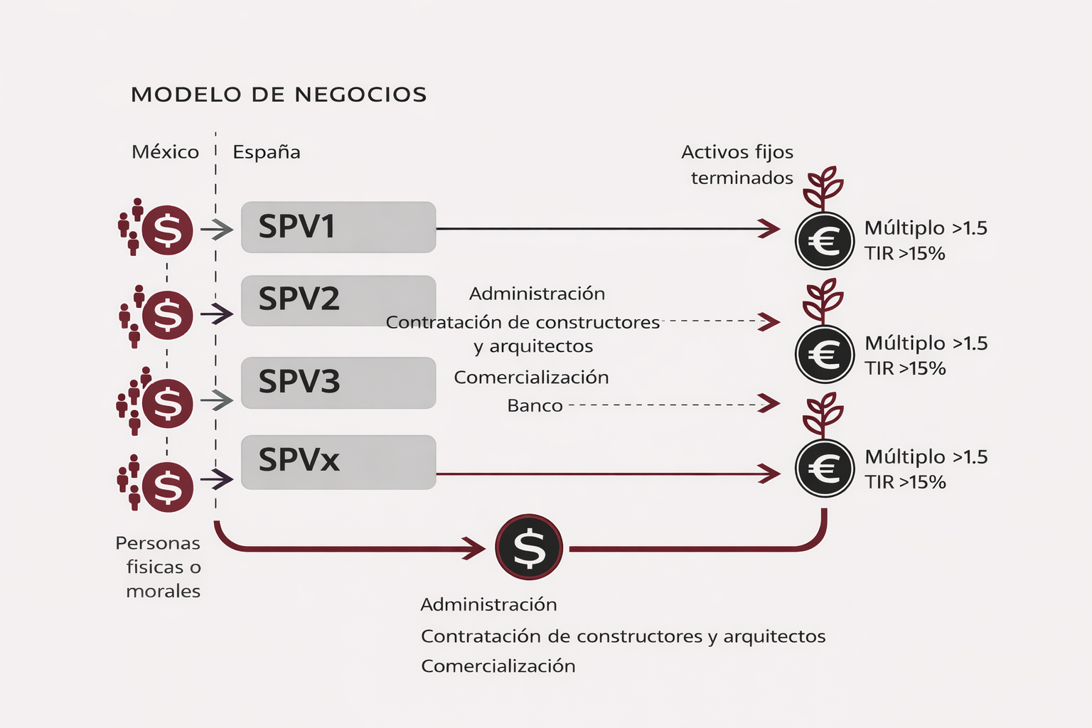 Cada proyecto se estructura a través de una sociedad independiente (SPV), lo que permite aislar riesgos y mantener una claridad financiera total